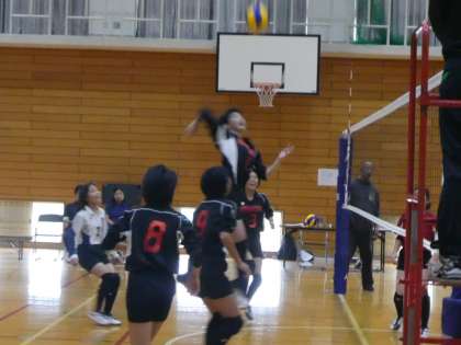 1つめの下鴨中学戦第1セットは、一度は追いつきかけたのですが、再び離され 振り切られました。第2セットも、いくつかいい攻撃の形を作るものの,鋭いサーブと強いアタックに押されました。