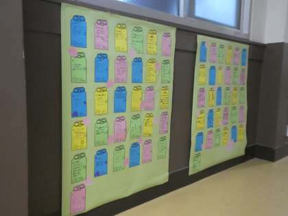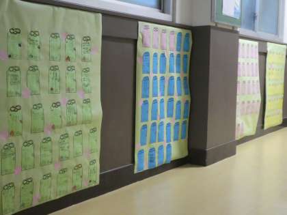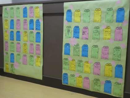 3年生のフロア(2階)の廊下に、たくさんのメッセージが貼られています。1・2年生が学級の時間に書いたものを、生徒会本部役員がまとめてくれたようです。