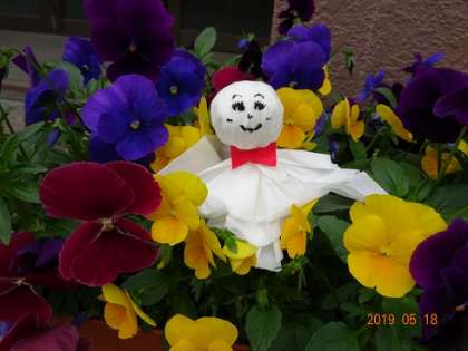 西ノ京中学校のプランターに,てるてる坊主が遊びにきました。