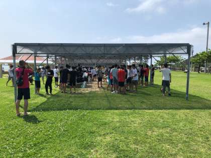 整列,点呼に続いて,ビーチでの諸注意や連絡を確認しました。