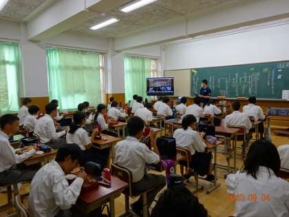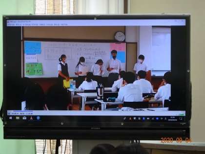 8/31(月)〜9/4(金),昼休みの時間を利用して,各教室に,夏季休業中に実施したリーダー学習会の発表の様子を映像で流しました。最終日の今日,配信されたのはD班の発表でした。