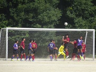 初戦の相手は向島秀蓮小中学校でした。残暑が厳しいなか,午後からの試合ということで選手も大変だったと思いますが,給水時間やハーフタイムには自分たちで戦略を確認し合いながら最後まで戦い抜きました。結果は0−2で敗れはしましたが,次戦につながるゲームだったと思います。