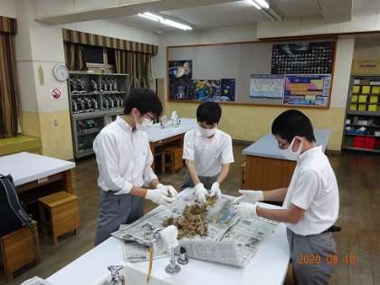 軍手をはめて,ひまわりの種を採りました。さすが,3年生!すぐに要領をつかんで,みるみる作業が進みました。収穫した種は,しばらく乾燥させます。来年も,力強く美しい花を咲かせてくれること願っています!
