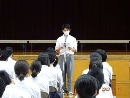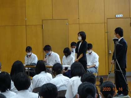 10月16日(金),本校体育館にて3年生の合唱コンクールを実施しました。発表は選択曲1曲のみ。マスクを外すのは,ステージ上の発表の瞬間だけ。コンクール形式にはせず,学年の生徒全員で投票して,「72期生賞」のみを決める。など…,例年にはない工夫をしながら,何とか自分たちの思いを形にし,発表できる場を設けることができました。体育祭に続き,ここでもまた「あきらめるのではなく,できることに全力で取り組む。」という強い気持ちで,ひとつの行事を成功させてくれました。3年生の頼もしい姿を1・2年生に直接,見て感じてもらえなかったことは少し残念でしたが,今日までの取組を含め,忙しい中,本当によく頑張りましたね。素晴らしい歌声をありがとう!