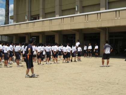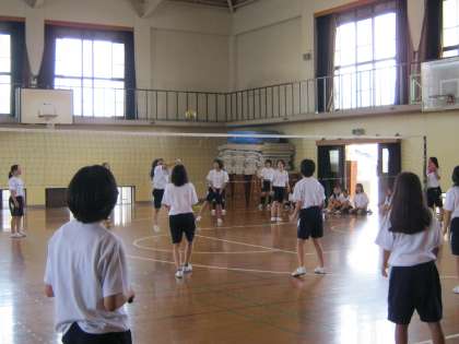7月8日(金)午後 昨日までのぐずついた天気が嘘のように晴れた午後、2年生の球技大会が開催されました。風は吹くものの非常に蒸し暑い中、みんな一生懸命プレイしていました。男子はキックベースボールで優勝3組B、準優勝3組Aと3組が1・2位を独占しました。女子はバレーボールで優勝4組、準優勝3組という結果に終わりました。暑い中ご苦労様でした。来週には3年・1年の球技大会が行われる予定です。