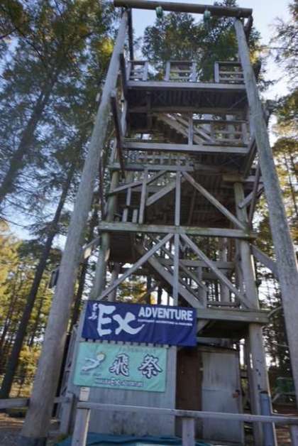 午後の洗濯別体験のEXアドベンチャーです。高さ約7-8メートルある様々なアスレチックに挑みます。