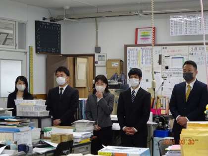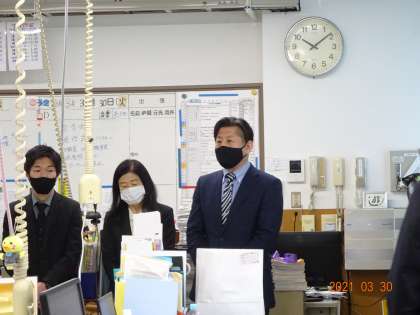 昨日の離任式の様子です。職員室で退任・離任される先生方から,お別れの言葉をいただきました。