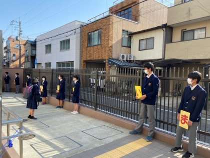 今日から来週の火曜日まで「あいさつ運動」が行われます。今日は,各クラスの評議員が明るい声であいさつをしていました。明日は,文化委員です。評議員に負けないように楽しそうな声で頑張って下さい。