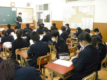 今日は授業の様子を見学しました。まずは,1年生です。2組は国語の授業,3組は数学,4組は保健体育の授業でした。5組は,移動教室で撮影することができませんでした。みんな,一生懸命にノートを書いている姿が印象的でした。