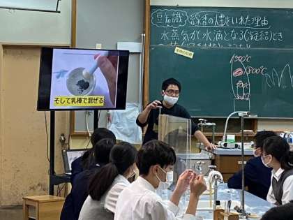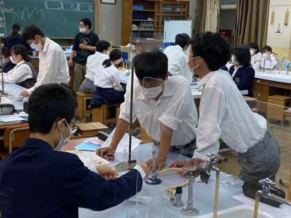 最後に,理科の授業。先生は,実験前の説明のとき,実験の1つ1つの段階を写真にして説明されていました。説明すればあっという間ですが,この説明パワーポイントを作るだけでも多くの時間がかかると思います。そんな先生の姿に頭が下がりました。