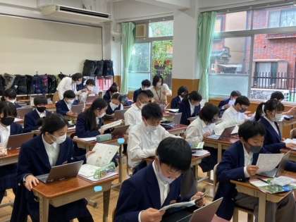 1年生は,教室のルーター配備が遅れたため,現在,授業での活用を行っています。