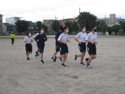 先週の土曜日から陸上部の練習が再開しました。陸上部は他の競技より早く,6月19日・20日という日程で夏季大会が行われます。したがって,他の部よりも早く開始されました。