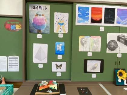 美術部で個人展を行っているということを聞きつけて,さっそく美術部にお邪魔しました。4月の時も,明るい雰囲気だなぁと感じていたのですが,今日も,相変わらず元気な様子でした。