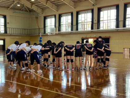 女子バレー部は,まじめな子が多い印象を受けました。先生の指導に対して,それぞれが考えて練習している姿が練習中にも見られました。その良さを大切にして下さい。夏季大会は,3年生が相手の試合になりますが勝利を目指して頑張りましょう。