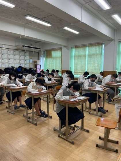 1年生にとっては,初めての定期テストでした。問題用紙に名前を書くのを忘れた人が多かったようで,それだけ緊張したのでしょうね。明日は,今日よりも落ち着いて,名前を書くのを忘れないようにしましょう。
