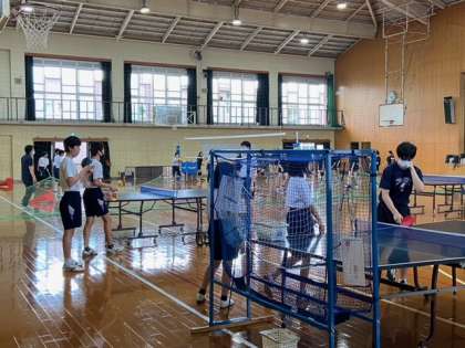 今日は卓球部の練習にお邪魔しました。それぞれの台では,上級生が下級生に教えていました。練習の最後まで見学して,キャプテンを取材しようと思ったのですが,たまたまキャプテンの1人がお休みでしたので,出直すことにしました。