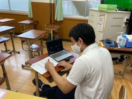 予定通り,今日の午後から1年生は端末を持ち帰ってTeamsの動作確認を行いました。ZOOMと異なるので,先生達も入念に準備を進めていました。