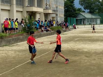 全市決勝は,7月23日に西院コートで行われます。21日には,団体戦も行われます。団体に出場できるのは3ペア。今後,部内戦を行い出場メンバーを決定するそうです。すでに引退が決まった3年生もいますが,団体戦は部員全員でのぞむ大会です。心を1つにしてまずは府大会の出場権を獲得して下さい。(写真は,全市決勝にすすむペアです)
