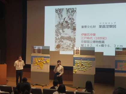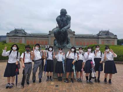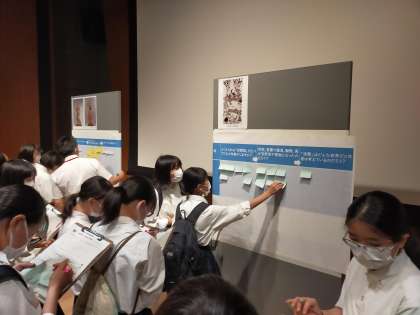 本校からは、1・2年生の部員が参加しました。国立博物館に展示されているいくつかの作品について文化財ソムリエから専門的な解説を聴いた後、実際に鑑賞して感じたことを記録し、各校の代表生徒が学びを発表しました。今日の学びを生かし、今後の部活で作品の魅力を伝えるためのポスター制作を行っていきます。