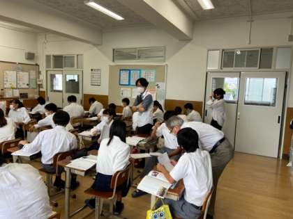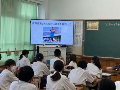 先日の音楽に続き,今日は道徳の示範授業が2年3組で行われました。テーマは公共の精神。クラスで貢献していることを意見交流し,お互いに支え合う社会について考えました。東京オリンピック・パラリンピック招致委員会プレゼンターとしてスピーチした,佐藤真海さんの読み物資料を使って考えました。
