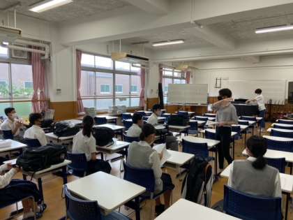3年3組では伴奏者,2年2組は指揮者,1年2組は指揮者・伴奏者ともにオーディションです。音楽科の先生以外に6人の先生が集まり,決められた範囲で行われました。皆さん,緊張した中ありがとうございました。