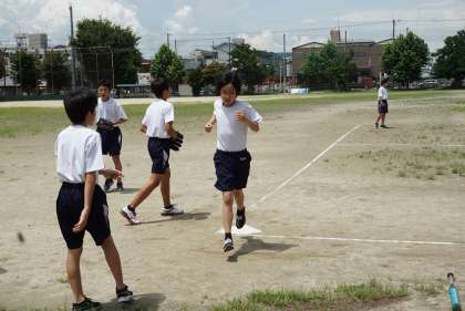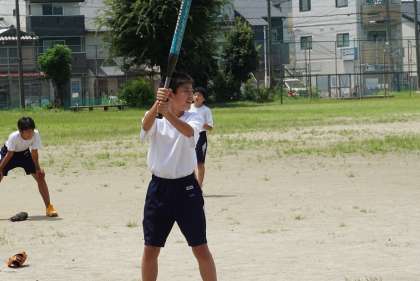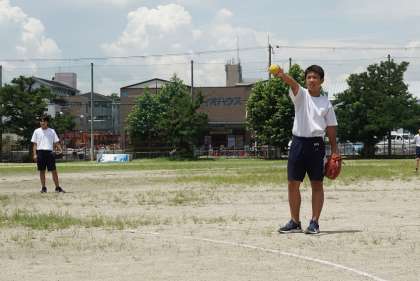 男子はソフトボール,女子はバスケットボールの開催です。男子のソフトボールは,ベストコンディション。朝に降った雨のおかげで,砂ぼこりが舞うことなく全力プレーができる状態です。