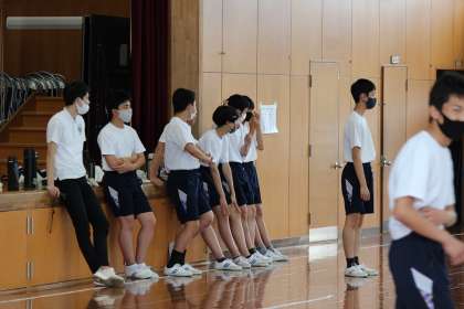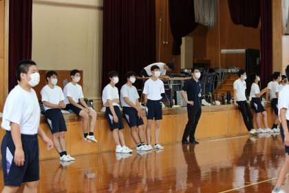 5組のMくん,声を出してチームをまとめます。ナイスナイスがんばろうの声!そして,先生が選んだMVPは5組のKくん。名セッターです。たくみなトスを上げて,スパイクのおぜん立てをしていました。