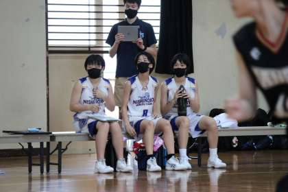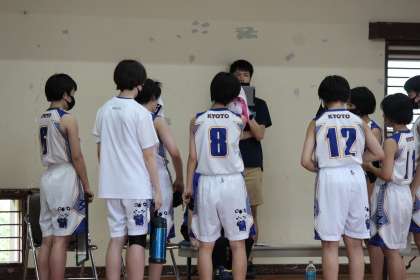 前半でかなりの差がつきました。2Qあたりから,1,2年生主体のメンバーで戦っていました。ディフェンスに入るのが遅れたりする場面もありました。得点差はどんどんと離れていきますが,顧問の先生から1つ1つのプレーの確認が入ります。特にディフェンスでの確認が続きます。
