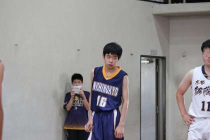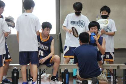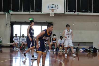 試合開始から,相手校は高い位置からプレスにきます。ポイントガードのMくん(3年5組)が思うようにパスを出せません。そのすきをついて,ボールを奪いにくる相手校。開始から一気に9点を決められます。