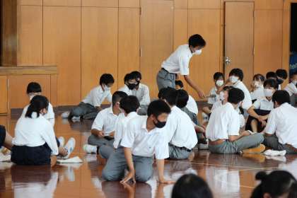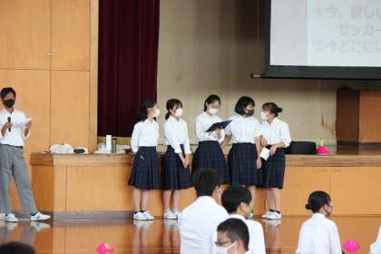 1時間目は2年生の学年集会が行われました。レクリエーション的な集会でした。