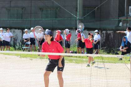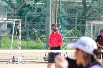 テニスの大会は審判を選手で行います。個人戦のときにはなかった線審もいました。試合には出場できませんでしたが,審判もコートに立てるので選手の1人だと思います。