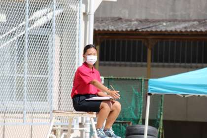 最終セットもは0−7で完敗でした。一生懸命に応援するみんな,審判を頑張る3年生,みんなが主人公でした。