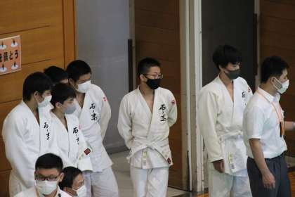 コロナ感染症対策として,試合の合間に畳を消毒液で消毒していました。しかも,あれだけ激しい試合をしているにも関わらず,試合がない時はマスクをしていました。身体接触が多い競技なので大変だなぁと感じました。