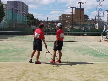 相手のペースに飲まれず元気に声を出しながら自分たちのテニスを貫きました。ダブルフォルトもなく冷静なプレーで,4−2で勝利しました。