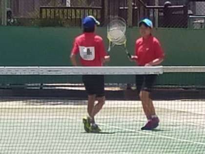 最初1セット取られたもののすぐに立て直し3セット連続で取り返します。しかし相手もその手を緩めず2セット奪い、3-3、一進一退の勝負となりました。最後は底力を振り絞り互いに励まし合いながら勝利をつかみました。