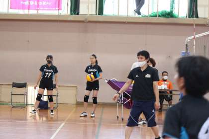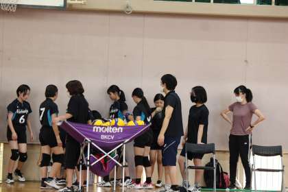 相手校のサーブで始まります。威力のあるボールが西ノ京中コートに向かってきます。サーブで連続5Pを奪われます。Hさん(2年4組)が片手を精一杯伸ばしてレシーブします。なんとか返しましたが,相手校の強烈なスパイクが決まり0−6,相手校のサーブミスで初めて得点が入り1−8となりました。