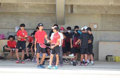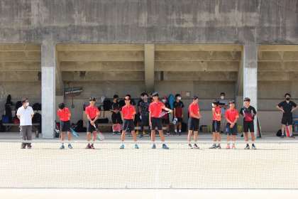 ベスト8に進出した男子テニス部。この試合に勝てば府大会の出場権を獲得できます。府大会は福知山市で行われます。男子も,個人戦とは違った盛り上がりがあります。