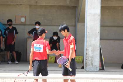 第2試合は,Tくん(3年3組)Nくん(3年4組)の出場です。相手が強いのは第1試合でわかりましたので,Tくんのサーブも狙って打ちます。しかし,狙えば狙うほどミスと隣り合わせです。ダブルフォルトで試合がスタートしました。