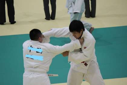 1試合目と同じように先鋒はYくん(3年4組)開始1分23秒,相手に絞め技を受けてたまらずギブアップします。絞め技とは相手の首を絞めて相手を失神させる技です。柔道の激しさが伝わります。