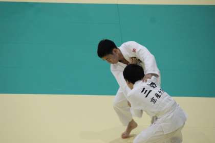 副将戦は,Sくん(3年2組)が,気合いは入る大きな声を出しながら見事一本勝ち。勝敗の行方は大将のOくん(3年4組)に託されました。