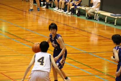 しかし,得点がどんどん離されていきます。Iさん(2年5組)の3Pがようやく決まるも,得点は11−43。残り4分でタイムアウトをとります。
