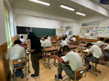 26日,27日の2日間,午前中の時間を使って学習会が行われました。2日間とも時間割が組まれて,各教科の先生が中心で行いました。演習中心の授業や夏休み以降に向けて押さえておきたい範囲の復習などを学習していました。