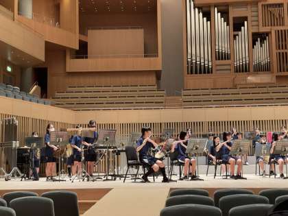 本番(8月2日)は,撮影禁止でしたので,リハーサルの模様をお伝えします。ライブ配信では,広いコンサートホールで演奏する西ノ京の発表を見ることができました。「感心されるより感動される音楽」を発表できましたか?感動されるには,まずは自分の演奏に自分が感動しないと始まらないと思います。君たちの練習風景を見学させて頂きましたが,吹奏楽が好き!という気持ちを感じることができました。その好きが感動へ変わるとき,もっと素晴らしい演奏になると思いますよ。