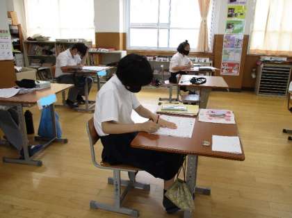 1組の自立の授業です。各自のつけたい力や課題に応じての学習の時間です。今日は漢字の練習に集中して頑張っている様子です、わからない漢字を辞書で調べながら自分のペースで練習しているところが印象的でした。
