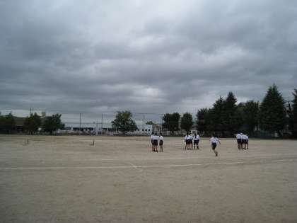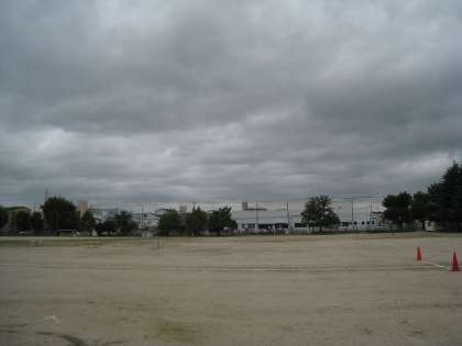 先週は、秋晴れのいい天候でしたが、秋の天気は変わりやすいものです。特に今週は天候の変化が速く感じられます。一昨日の台風予測では、勢力が弱くなり温帯低気圧に変わるとなっていたのが、勢力が衰えず今夜半に最接近の予測となっています。グランドからの空模様も、おどろおどろしい雲が立ち込め、愛宕山の山頂も雲の中に隠れている状態です。夕方までに、防球ネットなどを倒し、風で物が飛ばされないよう、台風への備えが必要と感じられました。