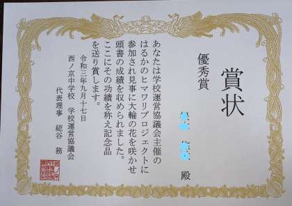 夏休みの間に,はるかのヒマワリを育てた4人に,表彰式が行われました。同じ種なのですが,それぞれに違うヒマワリが育ち,ヒマワリにも個性があるのだなぁと思いました。