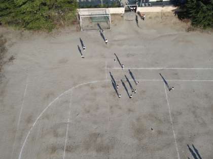 今日は,PTAフェスティバルの展示作品のために,ドローン撮影を行いました。せっかくのタイミングなので,部活の様子を空から眺めました。