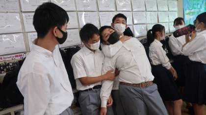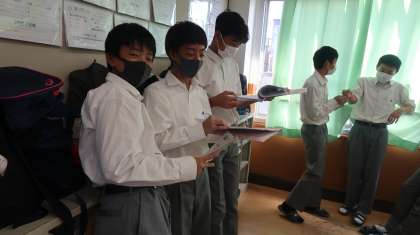 休み時間には「思ったよりできたわ!」「むずかしかった〜」などの声が飛び交っています。次のテストまで最後の追込みをする人や、友達と一緒に過ごしてリラックスする人など、それぞれの休み時間を過ごしている生徒たちです。