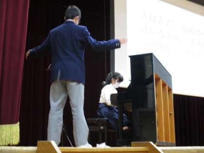 各クラス文化委員が今日の6限の「指揮者・伴奏者発表会」の企画、運営をしてくれました。みなさんの準備、そして当日の進行のおかげでとても良い発表会になりました。ありがとうございました。