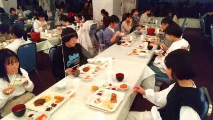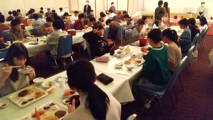 現在,夕食が終わり,入浴を各部屋で済ませ,平和学習会&レクレーション大会の準備をすすめているところです。